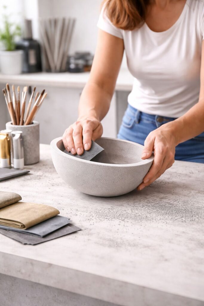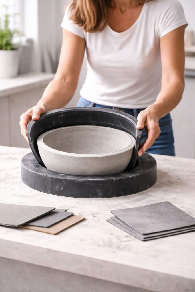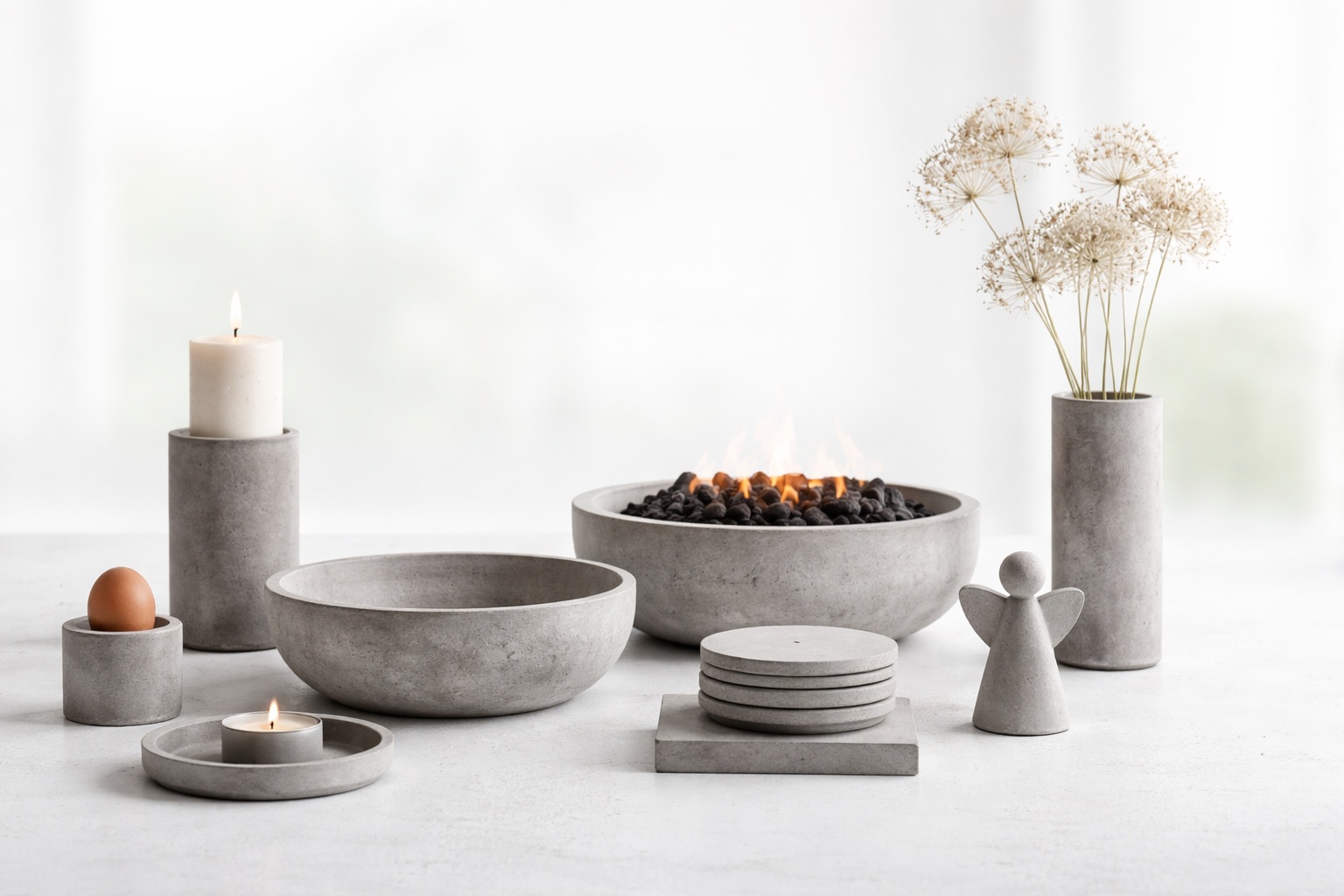 Die Betonprodukte entstehen manuell, in Ruhe und in sorgsamen Arbeitsschritten was die zeitlose Ästhetik unterstreicht. Sorgfältiges Mischen der Materialien, präzises Entformen und feines Nachbearbeiten gewährleisten die Wertigkeit und Einzigartigkeit. Jedes Objekt folgt einer einfachen Frage: Was ist wesentlich und was nicht? Klarheit entsteht nicht allein durch Weglassen. Sie entsteht durch bewusste Entscheidungen.